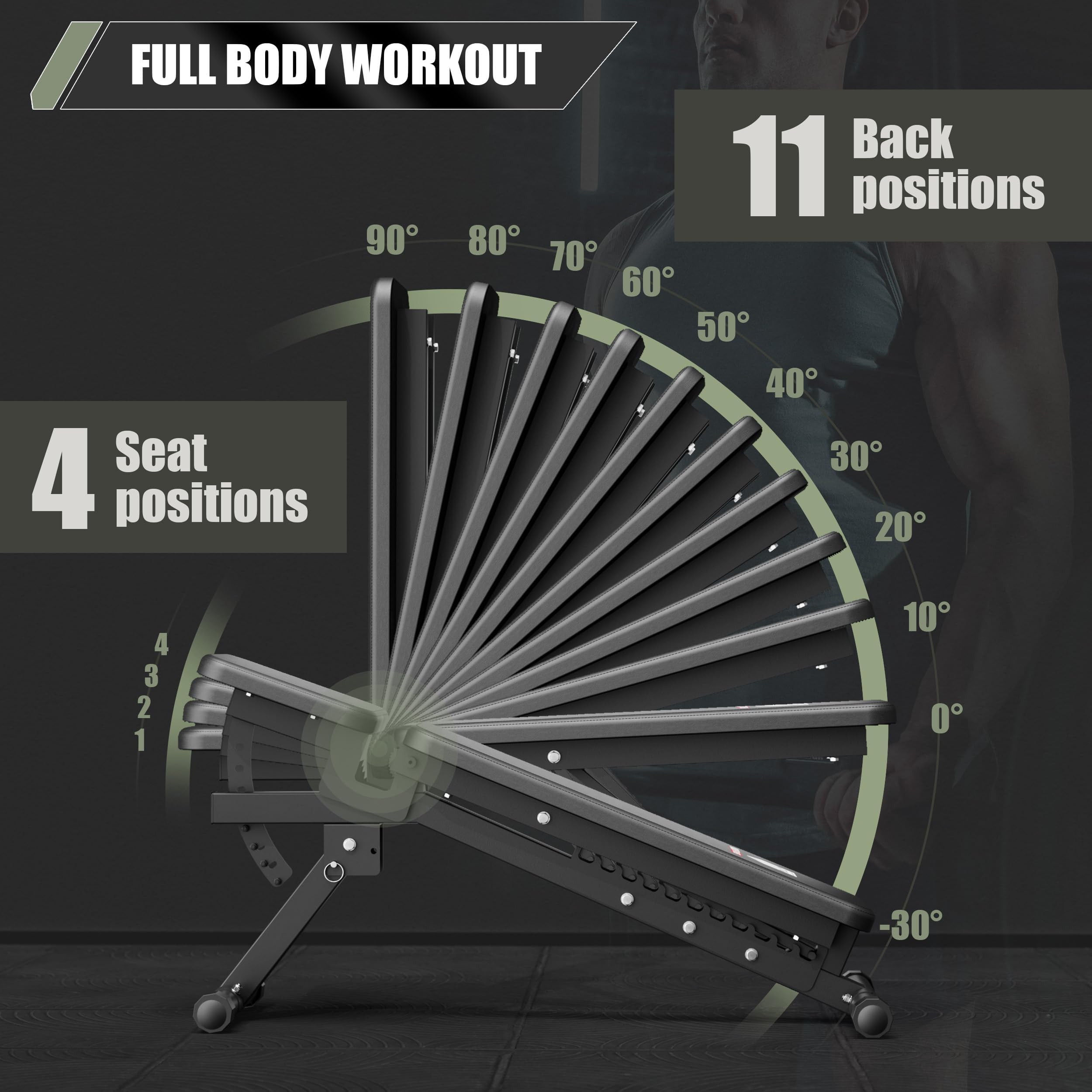 - 【Structure and Material】Featuring an innovative triangular design and commercial-grade square steel, the AB-1 has been rigorously tested to support a maximum load of 600 pounds. With 11 backrest positions and 4 seat positions, it accommodates personalized training requirements.